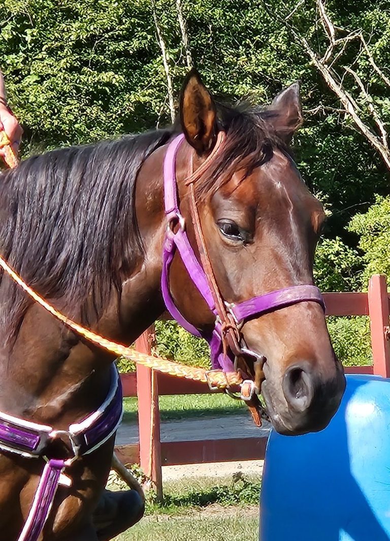 Qwin is a camp horse that we purchased in fall 2025. She stepped up quickly in her therapy horse role and is excelling with all clients.
